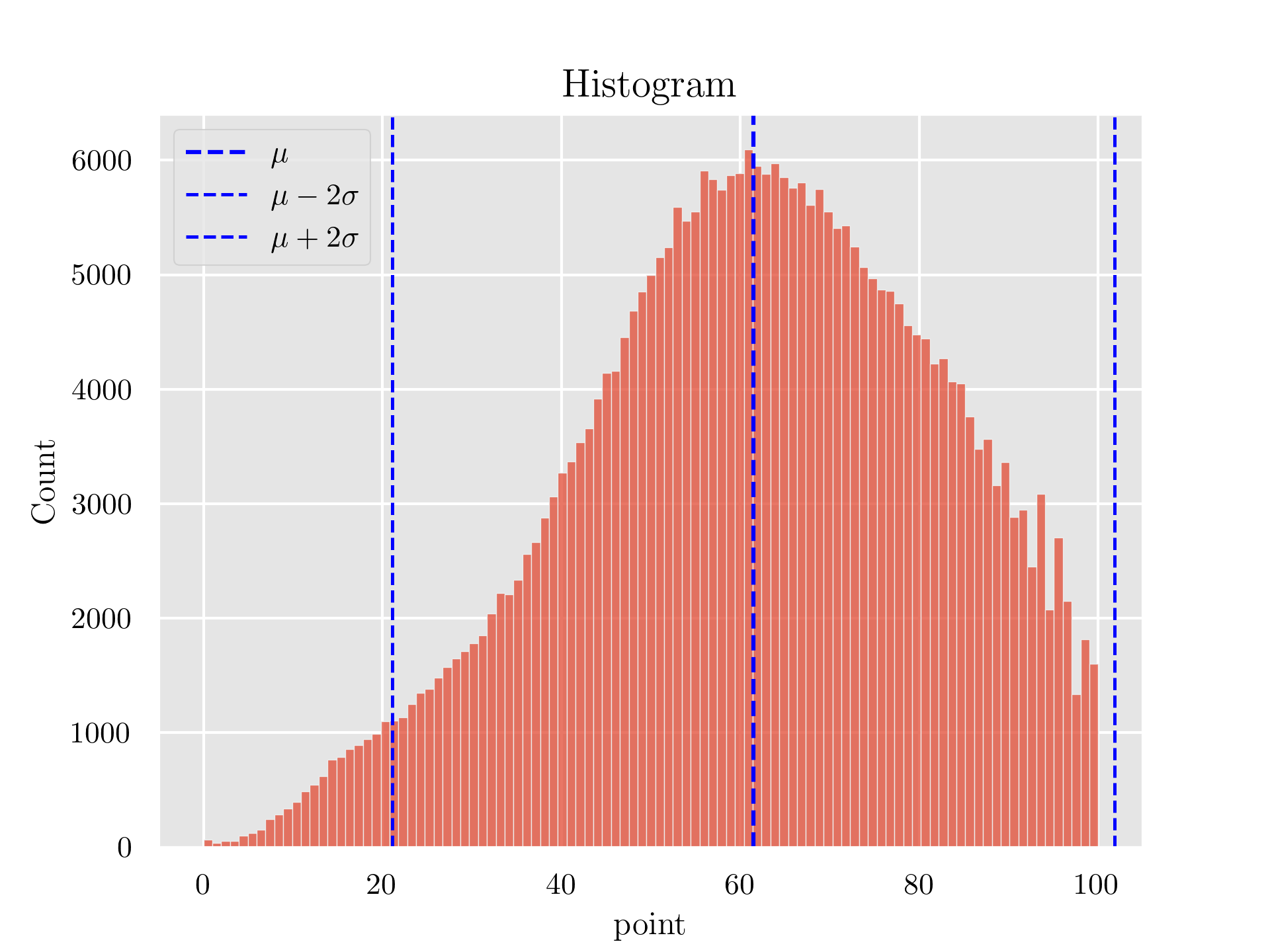 令和5年度の共通テスト数学Ⅱ・Bの点数分布をし使用してチェビシェフの不等式を確認します.